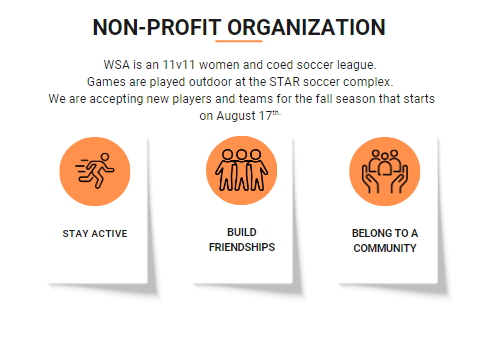 WSA is a non-profit league promoting soccer and contributing to the physical and mental well-being of its members.